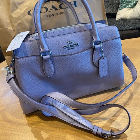 Coach skulderveske for dame laget av brunt leather materiale. Vesken har en justerbar skulderrem og gullfarget spenne på fronten. Passer til daglig bruk og ulike anledninger. Vesken er aldri brukt og selges fordi blir brukt for lite.