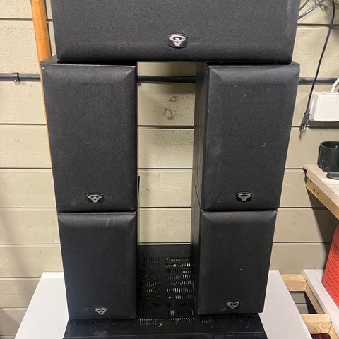 Denon AV-mottaker og Cerwin-Vega høyttalere