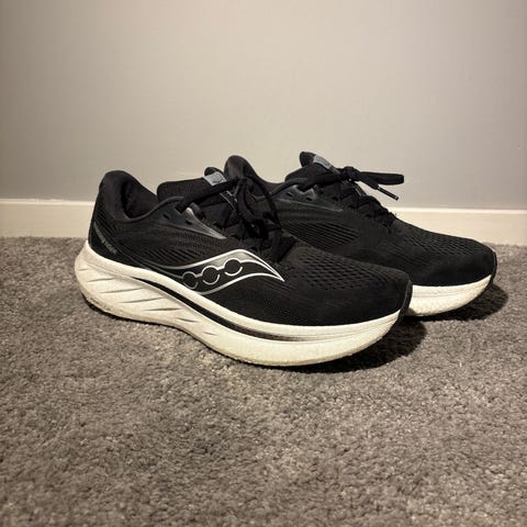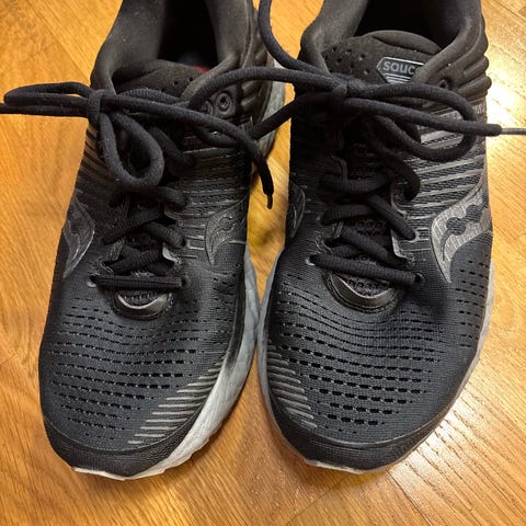Saucony løpesko med pigger i størrelse 40. Skoene er designet for løping og har en fargekombinasjon av gul og svart. Materialet og utformingen er tilpasset for løpsaktiviteter. Piggsko.