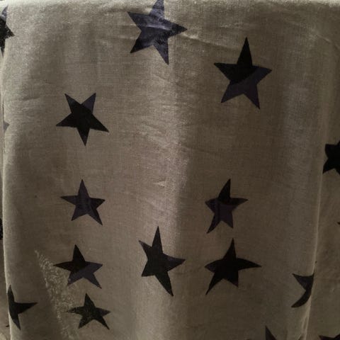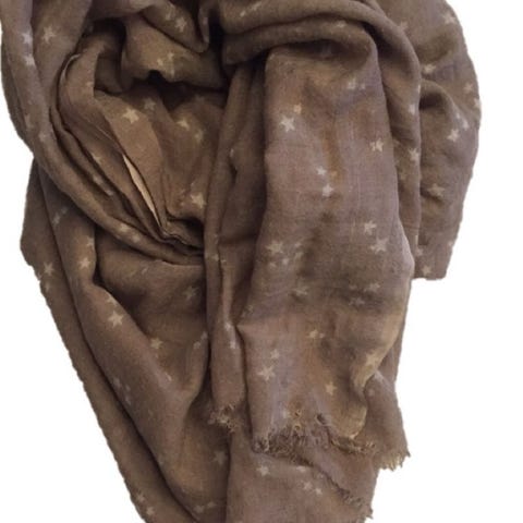 Becksöndergaard skjerf laget av ull og silke. Skjerfet har blå bunn med hjertemønster i sølv. Det er frynser i endene. Str 98 x 200 cm