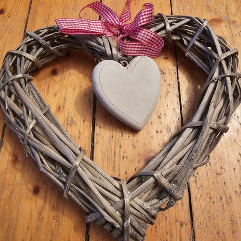 Julehjerter, stor og liten selges. Ca mål stor; H: 24 cm., B: 24 cm., D: 5,5 cm. Ca mål lille; H: 14 cm., B: 15 cm., D: 3,5 cm. Må hentes, sender ikke.
