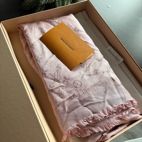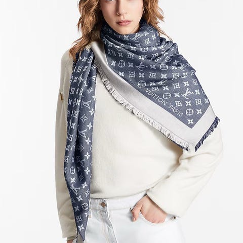 Louis Vuitton monogram silke/ull sjal,str 142*142