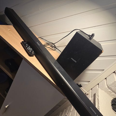 JVC TH-D33TH 2.1-kanals lydplanke med kablet subwoofer. Strømforsyning: AC 220-240V, 50/60Hz. Effektforbruk: 30W. Innganger: 1 optisk, 1 RCA. Produktet leveres med tilkoblingskabler og fjernkontroll. Farge: Sølv.