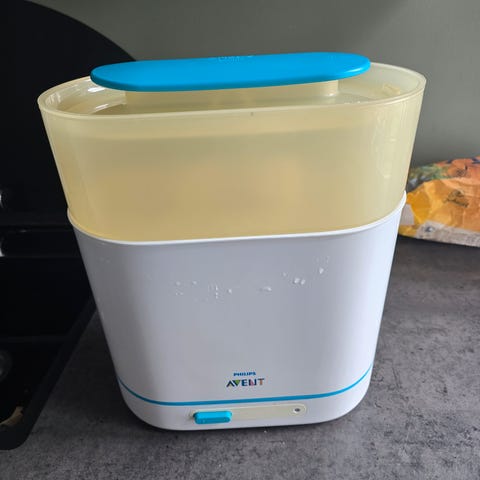 Litt eldre modell flaskesterilisator av merke Phillips Avent er klar til å reise til neste baby. Mye bruk igjen. Hentes av kjøperen på Orkanger eller sendes.