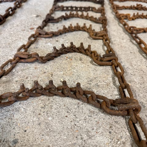 Snøkjettinger for traktorhjul 12,4*28 selges. Passer gråtass, mf35 og lignende. Det er godt brukte piggkjettinger hvor piggene er ganske slitte, men fungerer jo fint som ordinær snøkjetting.