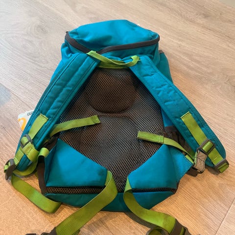Ryggsekk laget av stoffmateriale. Passer for unisex bruk. Ryggsekken har flere rom med glidelås og justerbare skulderstropper. Fargerik design med blå, rød, grønn og gul fargekombinasjon.
