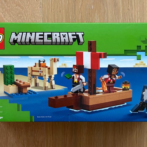 LEGO Minecraft byggesett med figurer og elementer fra Minecraft-verdenen. Inneholder flere karakterer og tilbehør for konstruksjon og lek. Egnet for barn og fans av Minecraft.