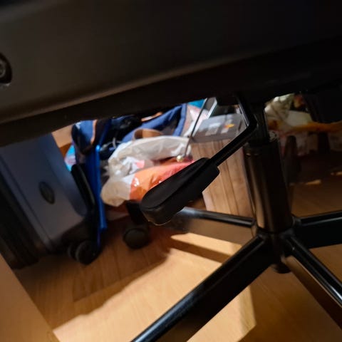 Pent brukt arbeidsstol i en flott turkis farge. Sittehøyde kan justeres. Noen små bruksmerker, se de to siste bildene.