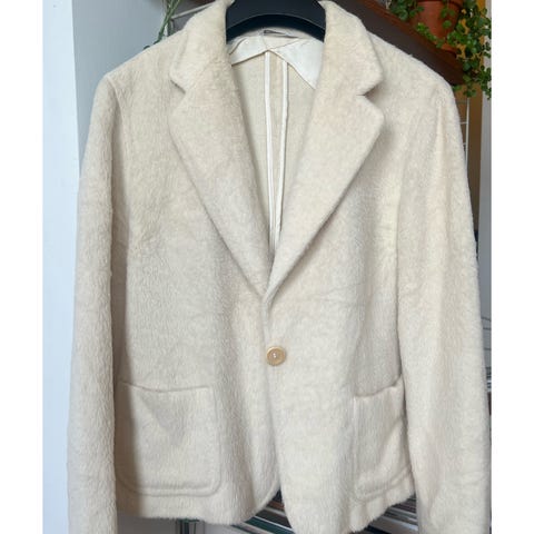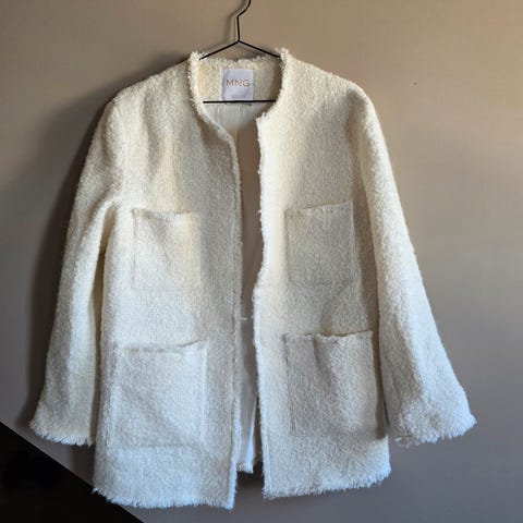 Anine Bing Andre jakker i størrelse XS, farge hvit, laget av ull. Jakken har en strukturert overflate med svarte detaljer.