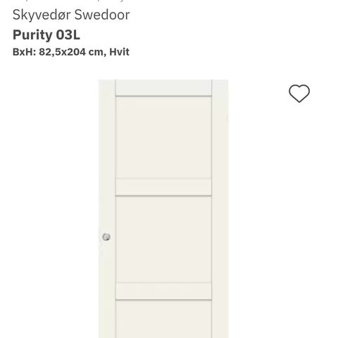 Skyvedør Swedoor style 03. 82,5x204 (passer ramme 90x210)