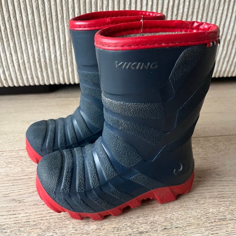 Viking barnestøvler i størrelse 27, unisex design. Støvlene er svarte og egnet for barn. De har isolerende egenskaper for bruk i kaldt vær.