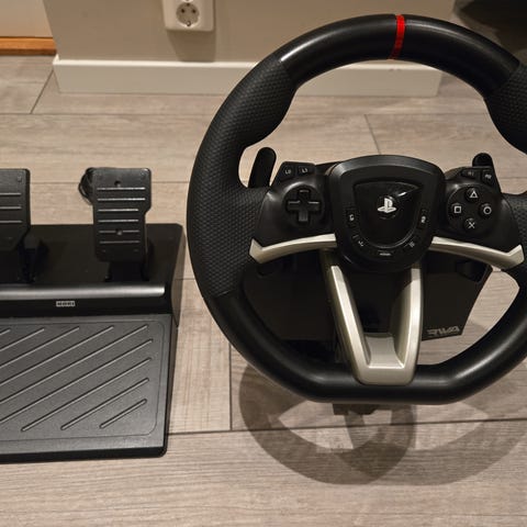 Dette er et Hori Racing Wheel Apex racingsett.