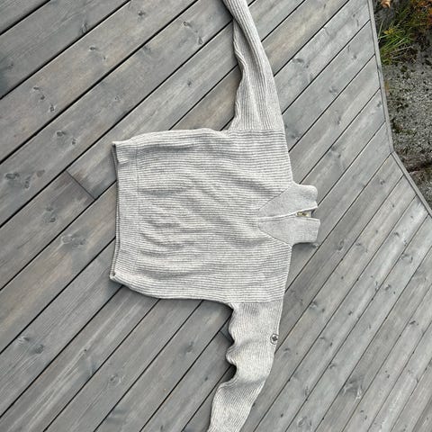 Varm genser pent brukt str. L men den er stor passer til XL ...det er flekk av stearinlys ,har prøvd å fjerne med vask men klarte ikke...genser etter vask og uten røyk / dyr lukt