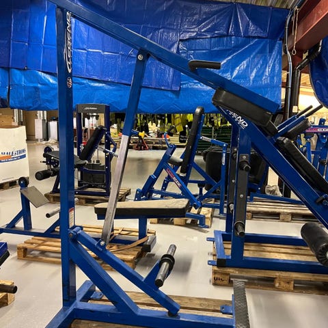 Kraftig plate loaded legghev, som har vært i bruk på et treningssenter. Her er det bare å lesse på så tung vekt som du vil.