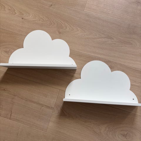 To stykk hyller. Den ene må limes litt. Den store er helt fin.