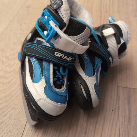 Barneskøyter for ishockey med justerbar størrelse fra 31-33. Skøytene har justerbar lukking for god passform og er egnet for barn.