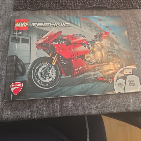 LEGO Technic Ducati Panigale V4 motorcykel modell i rødt. Inkluderer detaljerte funksjoner og instruksjonshefte for bygging. Passer for samlere og byggeentusiaster.