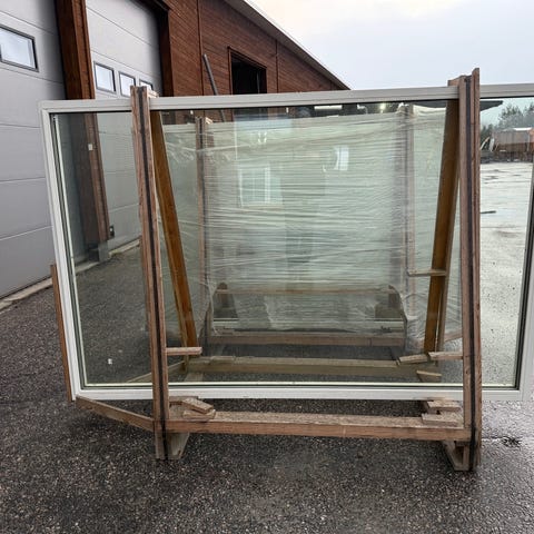 Fire hjemmesnekra uthusdører i spon med rammer i heltre selges for kr. 100 per stykk. Dørene måler hhv. 197x56, 194x63, 183x81 og 181x82. Dørene er i god stand, overflatene er ikke slitt, men trenger til en vask.