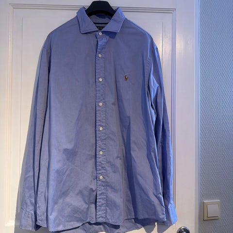 Selger en pent brukt Polo Ralph Lauren skjorte i herrestørrelse 16,5 som tilsvarer XL. Er vanlig i størrelsen, regular fit.