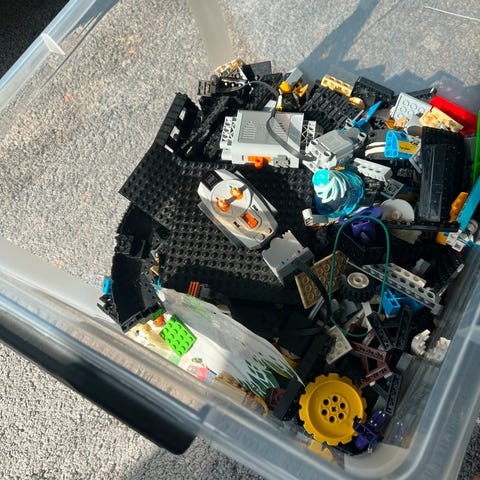 LEGO byggesett selges rimelig. Settene inneholder detaljerte instruksjonshefter for å bygge ulike kjøretøy.