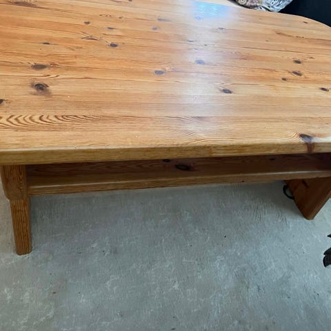 Mangler en knott på den ene skuffen, og har noen synlige vannflekker som lett kan pusses vekk