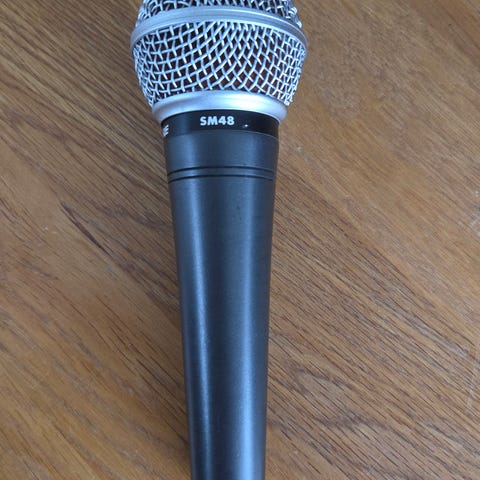 Shure SV100 mikrofon med svart vindhette. Helt svart vindhette. Av/på strømbryter. XLR-kontakt, men kabel følger ikke med. Mikrofonen har vært god de 10 årene jeg har brukt den og kun vært på flyttefot to ganger.