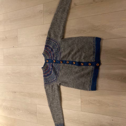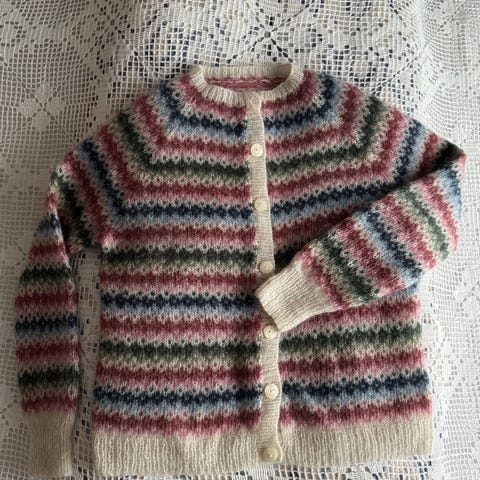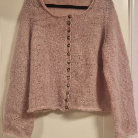 Hjemmestrikket ubrukt jakke i Finull/Tynn silk mohair