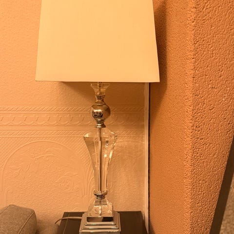 Pen liten bordlampe i glass. Nydelig lampe med mønster i glasset.
