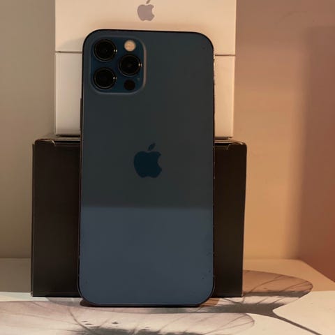 Selger min pent brukte iPhone 12 Pro med 128GB lagring.