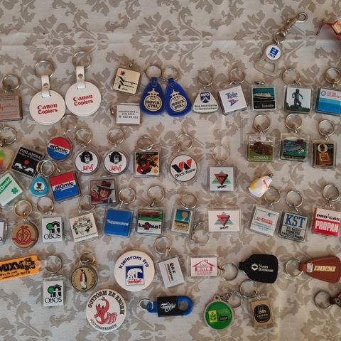 Diverse eldre nøkkelringer.