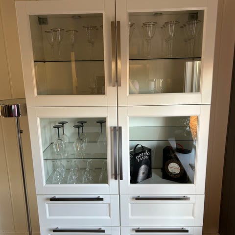 4 stykk vitrineskap
