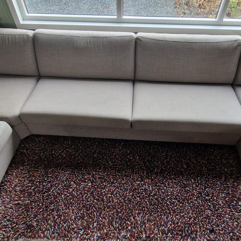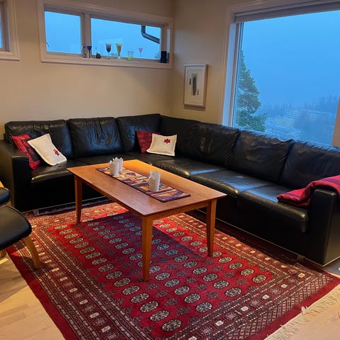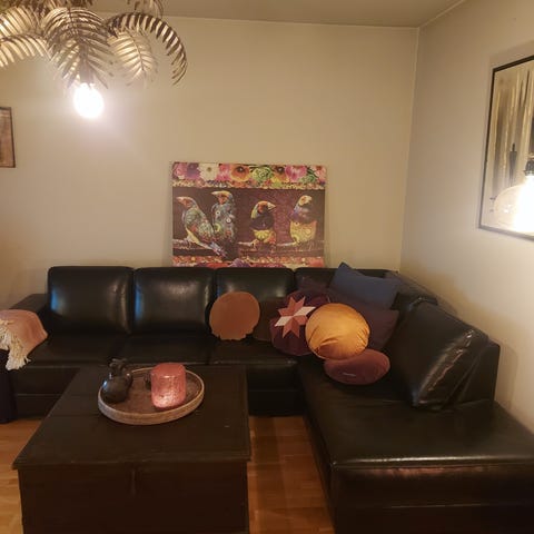 Pent brukt Hjellegjerde Mantovani hjørnesofa med åpen ende. Hele sofaen er i sort Nordic Line skinn. Seteputer i hardfoam. Ryggputer i hardfoam + dun for ekstra komfort. Består av 3,5 seter + hjørne + endemodul. 6-7 voksne får god plass i sofaen. Ny pris ca 70.000 kr. Selges rimelig grunnet størrelse.