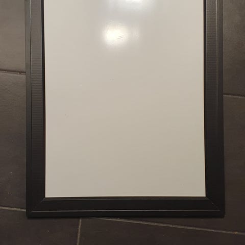 Whiteboard med svart ramme, inkludert fire tusjer og to magneter. Tavla er 59*44 cm