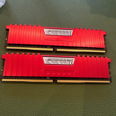 Et sett med DDR4 RAM-moduler fra mine tidligere PC-bygg.