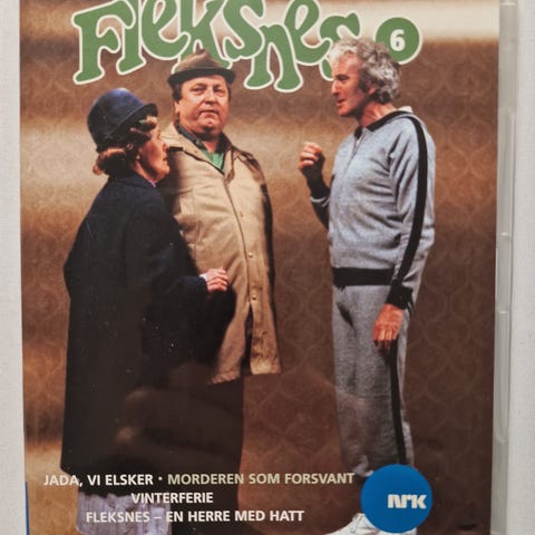 NRK Fleksnes DVD Sesong 4 inneholder flere episoder fra den norske TV-serien Fleksnes, inkludert titler som 'Høyt henger vi', 'Ta plass! Lukk dørene!', 'Bar'e 70', 'En uvanlig nennedi sa' og flere. Serien er på norsk og leveres i DVD-format.