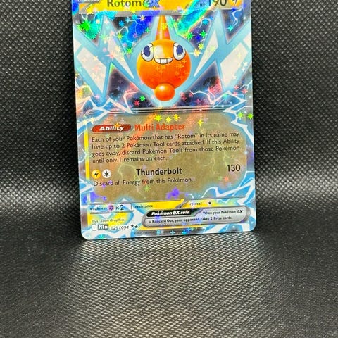 Selger 3 stk Rotom ex kort fra phantasmal flames. Kortene er tatt rett ut fra en pakke og inn i sleeves. Kan sendes som brevpost (31-38 kr), eller Norgespakke (73 kr).