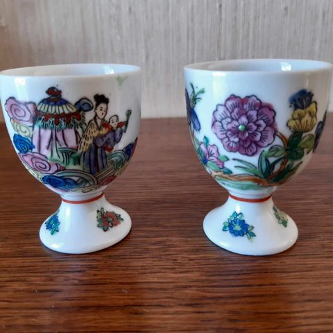 Vintage asiatisk eggeglass i porselen med dekorative motiver. Passer til servering av egg. Håndmalt.