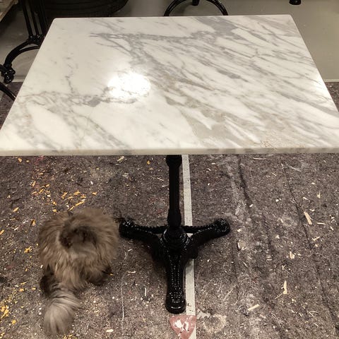 Eldre støpejern bord med marmor plate