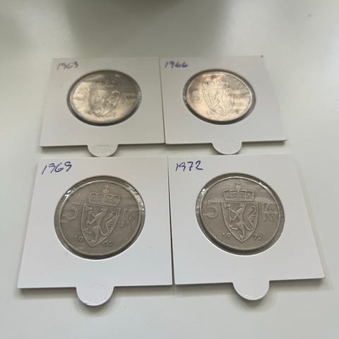 Den norske mynt klubb 5 kroner jubileums sett posten 350 år Fn 50år