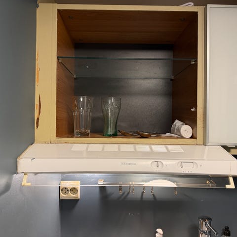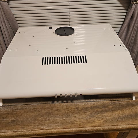 Ventilatoren fungerer helt fint, og er plukket ut av et kjøkken jeg har revet. Jeg skal nå ha benkventilator, og har derfor ikke behov for denne mer.