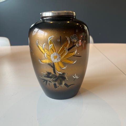 Asiatisk vintage porselen, liten vase med dekorative motiver