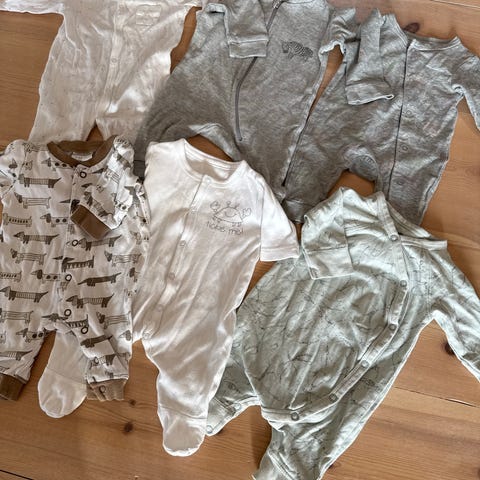 Kjøpt ny, brukt et par ganger til én baby; den er i perfekt stand. Den har hette, hansker og sokker som kan tas av.