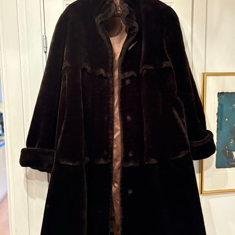 Kåpen kjøpt nylig er i imitert revepels i størrelse 2XL men for meg er den for liten. Jeg tror den vil passe bedre i str.38. Fargen er som vist på bilde. Hetten på kåpen er dobbel med fuskepels.