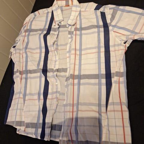 Hugo Boss XL T-skjorte i grå farge laget av bomull. Passer for menn og har en komfortabel passform.
