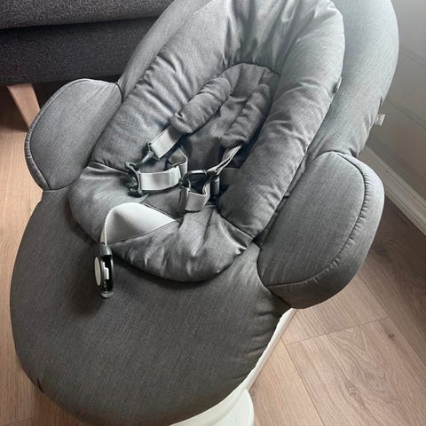 Bouncer fra stokke selges. Noen bruksmerker men i god stand. Selges med nyfødtinnlegg.