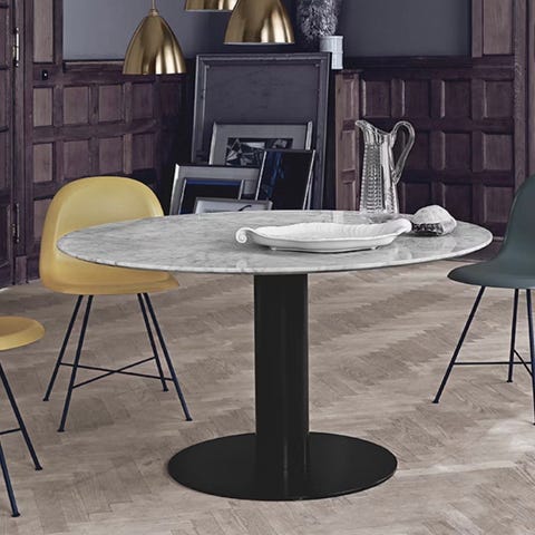 Pent brukt spisebord fra Gubi i hvit carrara marmor fra Italia. Svart understell.,