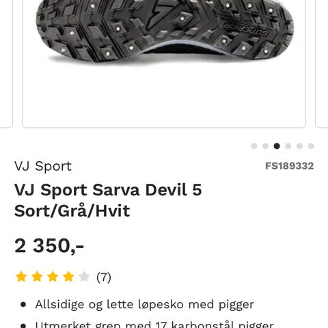 Ubetydelig brukte VJ Sarva Ace piggsko i str 45,5 til salgs då dei vart eit nummer for store. Romsleg og gode sko med fantastisk grep. Brukt på to korte turar på til sammen 13,7 km. Heiv eska då eg var bombesikker på str. Selgast for å finansiere nøyaktig same sko, berre eit hakk mindre.