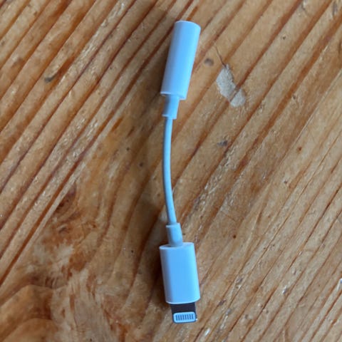 Er ubrukt da jeg ikke fikk brukt for den. Typisk hvis du har et eldre musikkanlegg med jack utgang og vil koble telefonen til anlegget for å spille musikk.