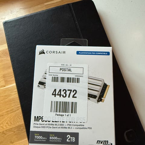 Corsair MP600 ELITE SSD oppgraderingsmodul for PS5 med 2TB lagringskapasitet. Designet for å utvide lagringsplassen på PlayStation 5-konsollen.kom med bud