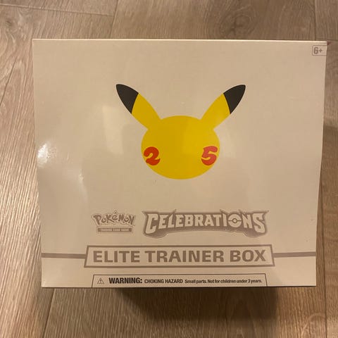 Pokémon Celebrations Elite Trainer Box inneholder samlekortspillutstyr med tema fra Pokémon Celebrations-serien. Produktet inkluderer kort, spilleutstyr og oppbevaringsløsninger, egnet for samlere og spillere av Pokémon-kortspill.